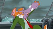Jurassic Bear. Freed by the thawing ice, a mysterious giant egg slides up to the front door of the log cabin. (7 min)