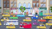 Mimo provoz. Když Mordecai s Rigbym jedou ve vozíku, uvědomí si, že přijdou pozdě na konferenci zaměstnanců. (10 min)